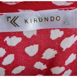Kirundo boho chic floral embroidered necklace ruffle red print dress Size XL, elastic waist
