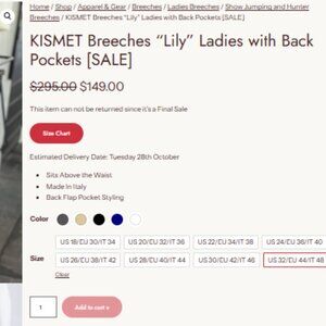 Kismet Navy Blue Equestrian Riding Pants Breeches Sz 32 US