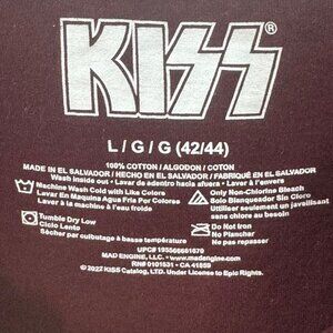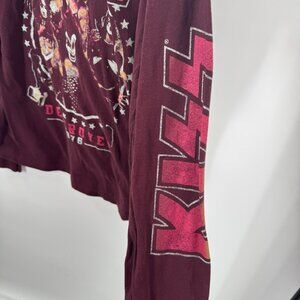 Kiss Burgundy Long Sleeve Band Tee Shirt Destroyer 1976 Women's Size Large 100%