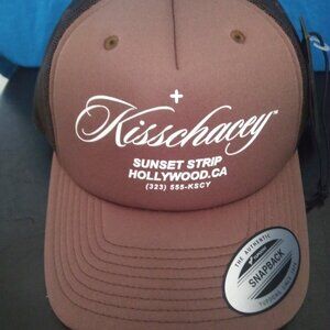 Designer Streetwear Brand KissChacey Brown Trucker Hat. Sunset Strip, Hollywood, CA Address Logo. Similar to Supreme style caps. Five Panel Foam Front Mid Crown. Message with questions and check other listings for combo deals.