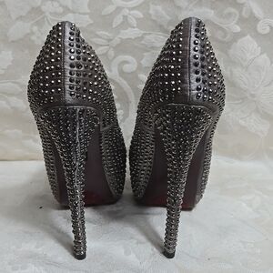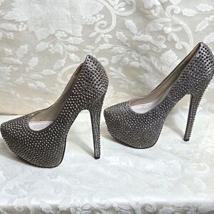 Sexy super high studded platform heels. Perfect for any occasion, these shoes feature a stunning silvet design that adds a touch of glamour to your outfit or if you need height. only one stud missing on heel and a couple of inside stains but overall good condition