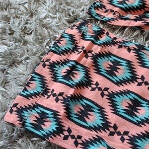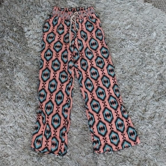 Elastic Waistband With Drawstring. Orange, Teal, And Black. Size Medium. Flare Style Leg.