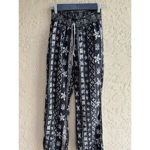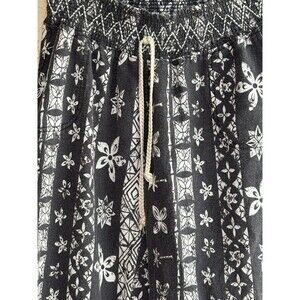 Kiss & Cry Women's Linen Blend Casual Pants Black & Ivory Sz Large Elastic Waist