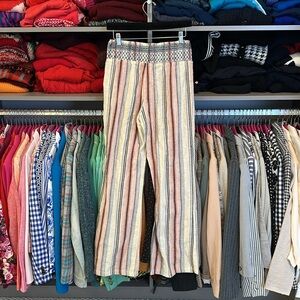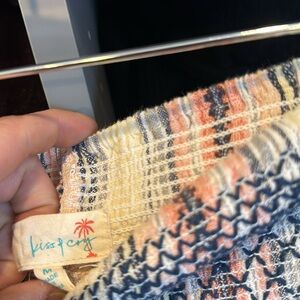 Kiss & Cry navy/coral/yellow striped elastic waistband size M