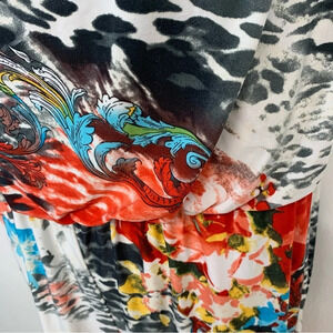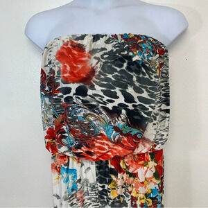 Kiss & Fly Strapless Jumpsuit Large Stretch Knit Colorful Mix Print Cinch Waist