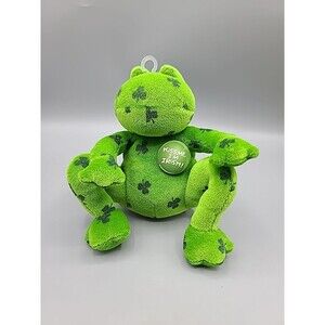 Kiss Me I'm Irish Shamrock Small Green Frog Toad Figurine Plush