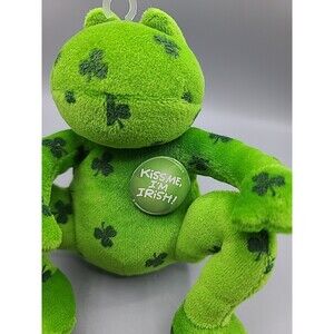 Kiss Me I'm Irish Shamrock Small Green Frog Toad Figurine Plush. Filled with PE pellets.