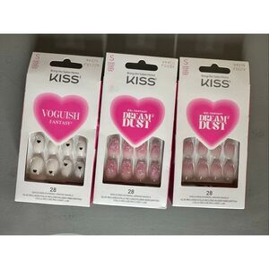 Kiss Short Length Pink Glitter and Black and White Heart Nails New.