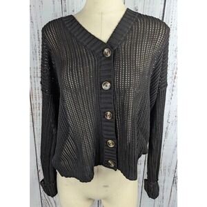 Kiss & Tell Plus Size Distressed Cardigan Black Size 1X Button Front