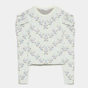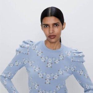 Kiss The Stars Floral knit blouse,Balloon Shoulder, Size XS