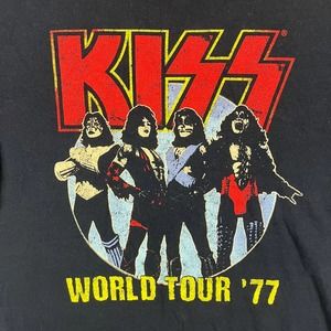 Kiss Women's Small Band Tee World Tour '77 Black Graphic T-Shirt Short Sleeve