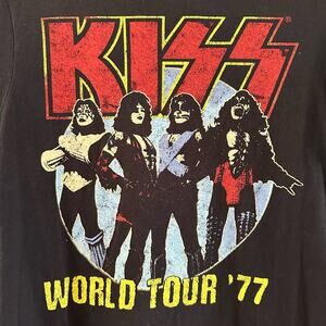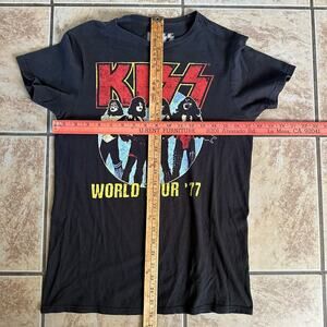 Kiss World Tour 1977 Graphic Band Tee Black Unisex Size Small Black Shirt