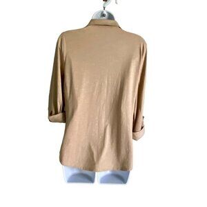 Kiss and Fly Button Down Shirt Roll Tab Sleeves Beige Women's Size Medium