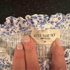 Kiss the Sky Blue and White Floral Off-Shoulder ruched mini Dress