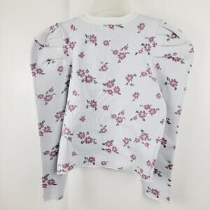 Kiss the Stars Puff Shoulder Crochet Crop Top S Cream Pink Floral Blouse