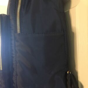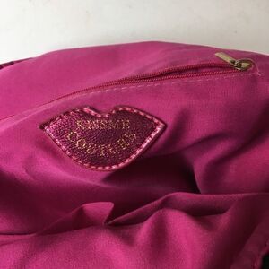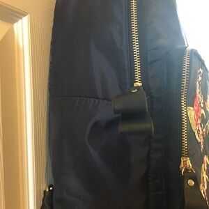 Kiss Me Couture black Backpack with Floral embroidery pre owned in good used condition the outside of the bag has no tear clean the inside is clean does have a small tear see pictures. The bag is very spacious has two large pockets and two side pockets with adjustable straps.