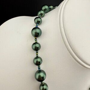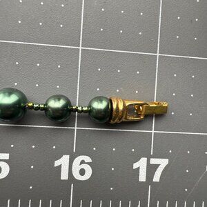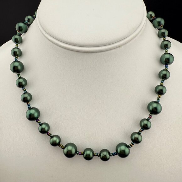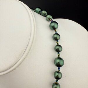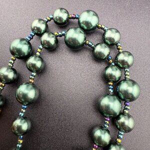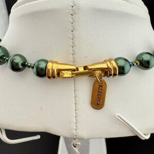 Kissaka Green Glass Bead Faux Pearl Necklace With Gold-Tone Clasp Elegant Design