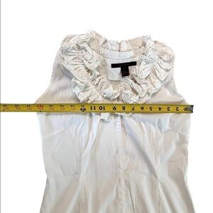 Kisses & Co. White Sleeveless Button Down Ruffle Neck Collar Size Small