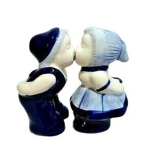 Kissing Dutch Boy Girl Salt Pepper Shakers Blue White Ceramic Kitchen Gift NEW