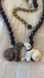 It has deep purple beads necklace and is approximately 16” plus 4” extender chain.