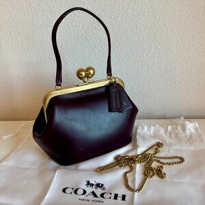 BRAND NEW Coach Kisslock 16 in Black Currant. Buttery soft glovetanned leather. Includes detachable gold chain strap with 21.5" drop for shoulder or crossbody wear.