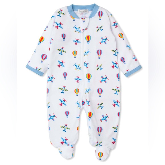 sky traffic theme patterns this cozy footie for your baby boy, made from the softest Pima cotton for ultimate comfort.