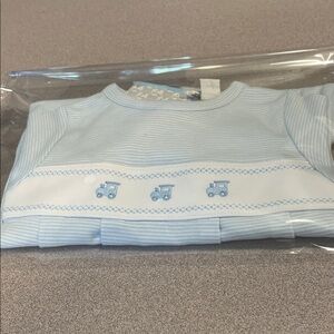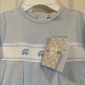 Kissy Kissy Baby's Embroidered Train Striped Footie 100% Pima cotton NWT