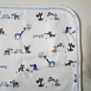Kissy Kissy Dogs Playing Sports Pima Cotton Baby Blanket Receiving Blanket Security Blanket Lovey Blankie Lovie. Adorable little blanket with different dogs playing all kinds of sports, football, tennis, basketball, soccer, and baseball. No tags attached, but I believe that this has never been used or washed. Excellent Used Condition.