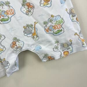 Kissy Kissy Pima Cotton Save Our World Playsuit Romper. Baby boy size 0-3 months. Super soft sleeveless one piece outfit is perfect for summer! White with assorted animals. Excellent condition!