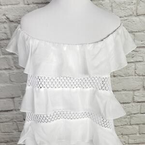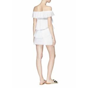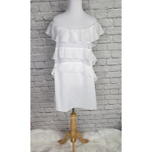 Kisuii Noia White Off-Shoulder Ruffle Tunic Dress Beach Coverup Cotton Sz M