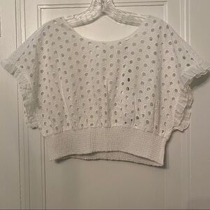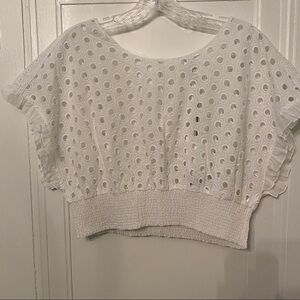 Kisuii "Zoie" top in eyelet embroidered poplin.