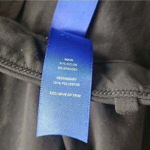 Black nylon blend crops with front and back pockets. Zip, clasp, and button closure. In great condition.