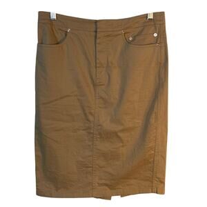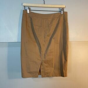 Kit & Ace Mainstay Stretch Skirt SZ 8 Camel Tan Silk Blend Pencil Midi Fitted