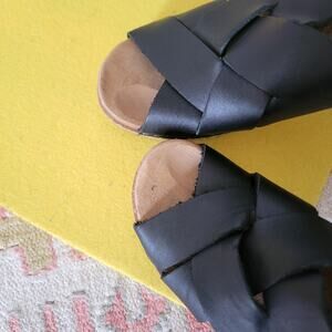 The perfect clog for everyday wear! Thick braid black leather w a thicc leather heel pad + big toe divot. Dark Alder wood base. Worn very lightly, still look brand new. 2.5" heel, size 40