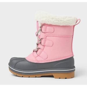 Step up their footwear closet with these Kit Easy-On Winter Boots from Cat & Jack™. These easy-on winter boots feature a polyurethane-blend upper with soft faux-fur lining and water-repellent qualities to keep their feet warm and dry. A lace-up closure and back loop complete the look and offer easy on and off.