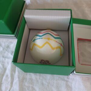New bundle of 2 Kit Kemp Spode Rik Rak Bauble Christmas ornaments. They are both new still sealed, only one was opened just for photos. It is hand panted and a lot prettier in person then photos. Great to keep one for you and give another to someone close to you, so you have matching ornaments! They come in their own individual gift boxes!