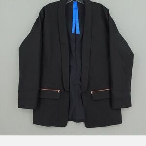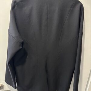 Wool/spandex/cashmere/silk blend blazer in black. Open style (borrowed from the boys). Drop shoulder. Rose gold hardware. Size 6.