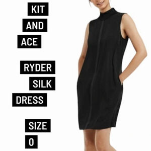 Kit and Ace women's size 0 black sleeveless mock neck silk blend Ryder dress