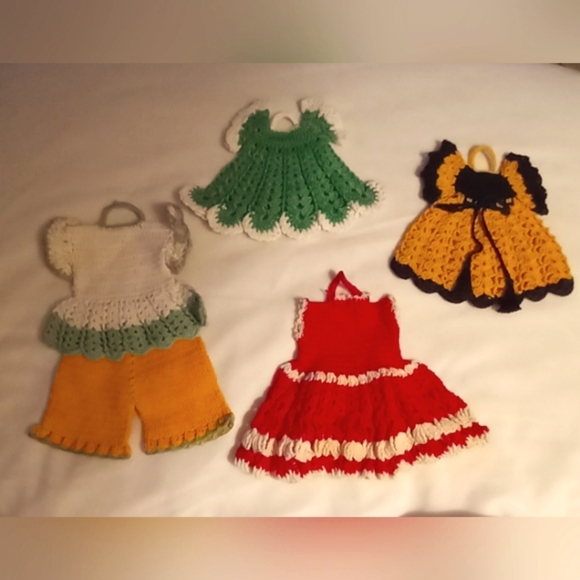 Kitchen 1950s Crochet Hot Mats Panties Bloomers Dress Basket vintage 5 pcs