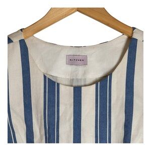From an independent designer, this lightweight denim dress features a cap sleeve, rounded hem that’s ever so slightly longer in the back, elastic at the back waist seam, back cutout, side zipper closure, on seam pockets and incredible style.