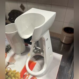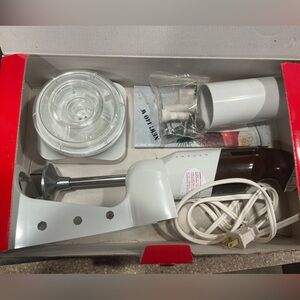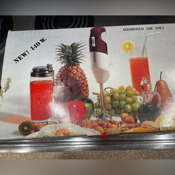 Kitchenette daily mixer - used but still works haven’t used in a while. Purchased back in 1991. So I’m the older side Has some attachments. The feet in the cup at broken off but it still sits flat in the container