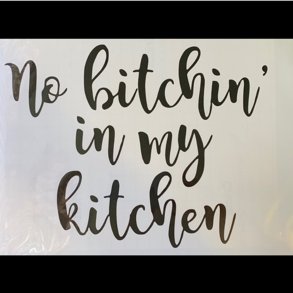 “No Bitchin in My Kitchen” Vinyl decor. I have 1 black and 1 gray one available.
