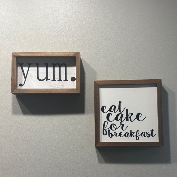 Enhance your kitchen with these cute signs! Featuring a warm brown frame and a crisp white background, these pieces add a touch of farmhouse style to any space. Perfect for food lovers, the playful text brings a delightful vibe to your home.