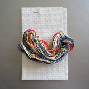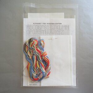 This kit includes: 14 count cotton Aida fabric, embroidery floss, needle, and instructions.