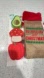 All items in lot are new. Festive wine bag with 'No Peeking' design. Includes 2 rabbit wine stoppers, 3 neutral kitchen towels and 3 vegetable sponges . Perfect for gifting