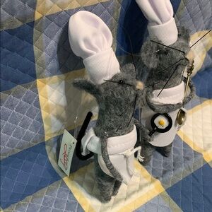 A set of two felt critter mice from our Kitchen Collection wearing chef hats and aprons. One is holding a frying pan and the other is holding a large spoon. Our Kitchen Mice critter set makes a great addition to any kitchen décor. This is not a toy. Dimensions: 2 x 3.5 x 6 in