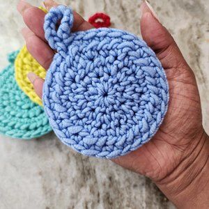 Handmade pot scrubbers perfect for kitchen clean up. These crochet scrubbing sponges are made of 100% nylon. Each scrubber is perfect for cleaning pots and pans, sinks, and much more.