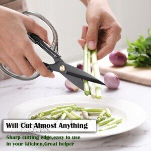 • Unmatched Versatility and Precision: Essential for home cooking or professional kitchens, these heavy-duty scissors make food preparation. From processing food, chicken, and seafood to cutting herbs, linen, paper, cardboard, fabric, tape, and photos, these sharp scissors add convenience to daily kitchen activities.