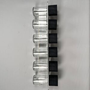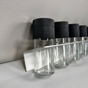 - Comes with six jars and can be installed on the inside of a kitchen door or on the wall