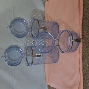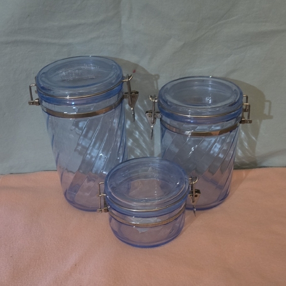 these are plastic storage containers for the kitchen it storages flour sugar etc. they are in good condition handwashable NON MICROWAVEABLE